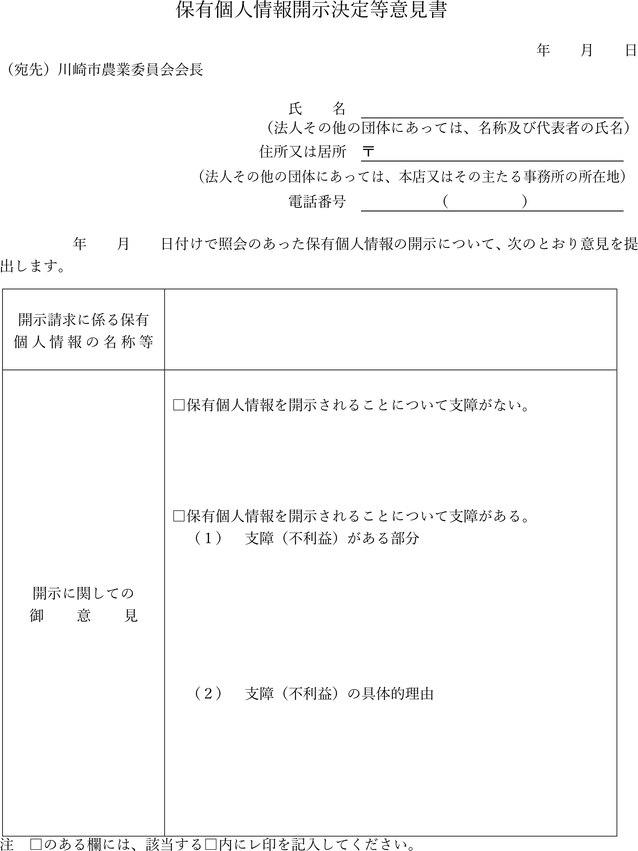 保有個人情報開示決定等意見書