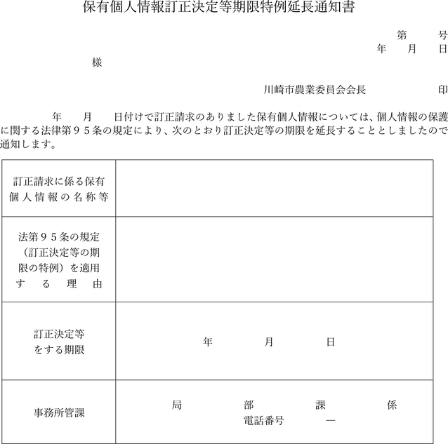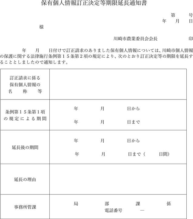 保有個人情報訂正決定等期限延長通知書