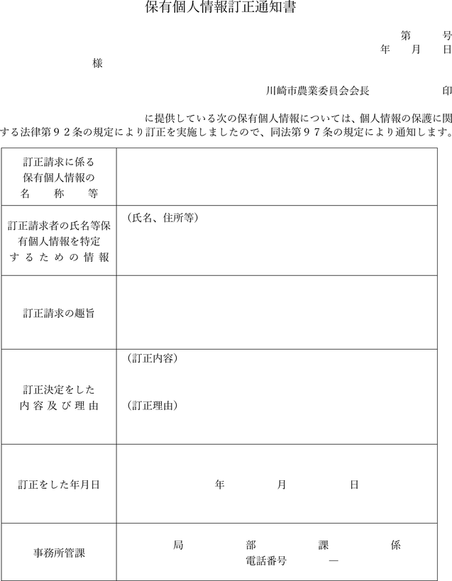 保有個人情報訂正通知書