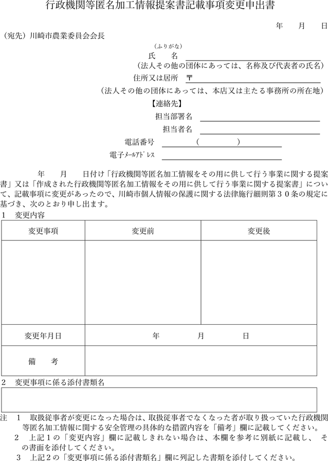 行政機関等匿名加工情報提案書記載事項変更申出書