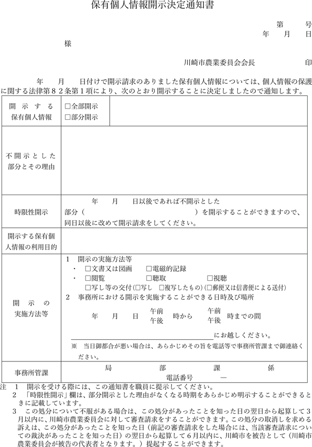 保有個人情報開示決定通知書