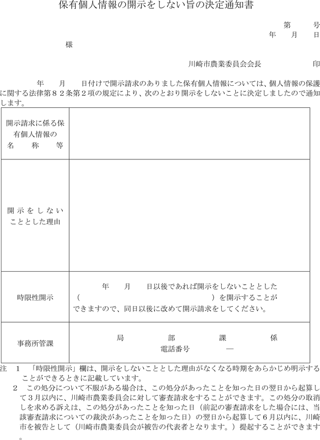 保有個人情報の開示をしない旨の決定通知書